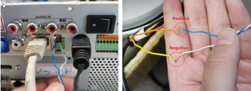 - Cáp RS-485 có 2 dây tín hiệu trong cáp UTP, nên kết nối đầu dây RS-485 của Speed ome và cổng RS-485 của DVR, như hình 1-4 Cáp RS-485 có thứ tự phân cực, khác với kết nối cáp nguồn