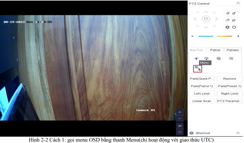 - Bước 2: Click vào menu OSD trên trình điều khiển PTZ Nếu bạn điều khiển Speed Dome sử dụng giao thức UTC PTZ bạn có thể gọi menu OSD bằng cách click chọn thanh Menu như hình 2-2.