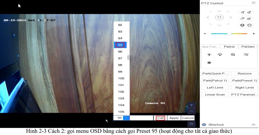 - Bạn có thể gọi menu OSD của Speed Dome bằng thanh Menu hoặc preset 95