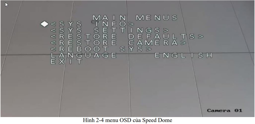 - Menu OSD của Speed Dome hiển thị như hình 2-4