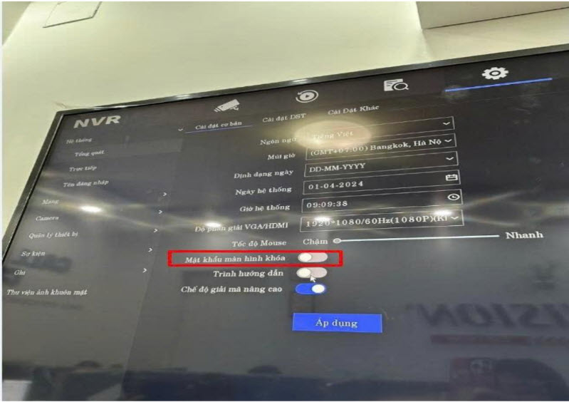 - Lưu ý: trường hợp khi tắt mục này sẽ không còn bảo mật đầu ghi khi thao tác trên màn hình tivi.
