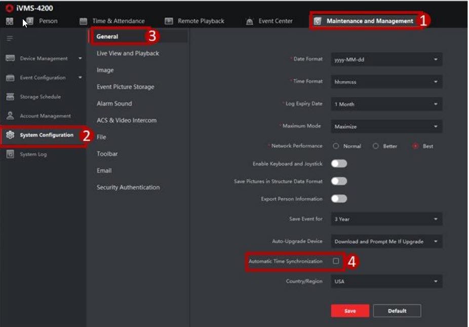 3. Đồng bộ thời gian máy tính qua ivms-4200.