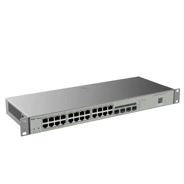 - Kết nối đa dạng: Được trang bị 24 cổng 10/100/100BASE-T và 4 cổng SFP BASE-X, RG-NBS310-24GT4SFP-V2 cho phép kết nối linh hoạt và mở rộng phạm vi mạng.