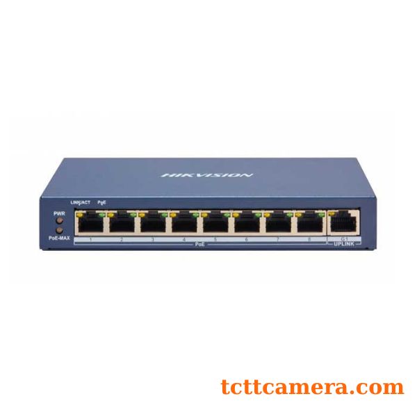 - 8 × 100 Mbps PoE RJ45 ports, 1 × gigabit network RJ45 port.