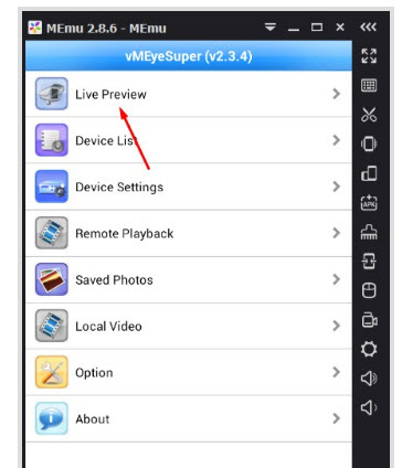 - Back lại Menu chính. Lúc này chúng ta sẽ vào mục Live Privew để xem trực tiếp