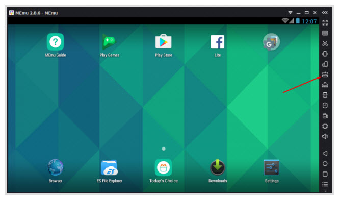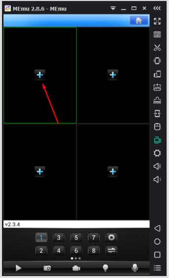 - Chờ khoảng 20s nó khởi tạo android và phần mềm sẽ hiện lên giao diện chính. Các bạn nhấn vào mục APK như mũi tên để chúng ta cài đặt phần mềm iVMS-4500 lên đây.