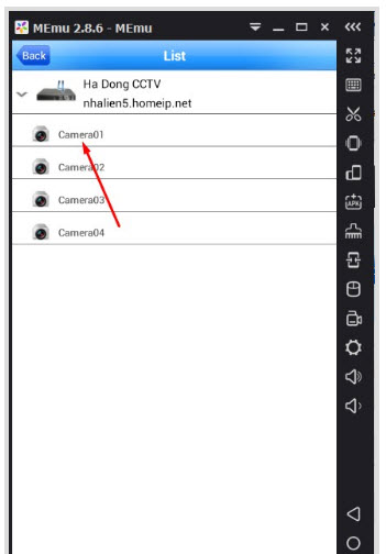 - Chọn mắt camera. Các bạn muốn xem 4 camera thì chọn 4 lần, mỗi lần chon một mắt khác nhau thì sẽ xem được 4 camera cùng 1 lúc tại một thời điểm.