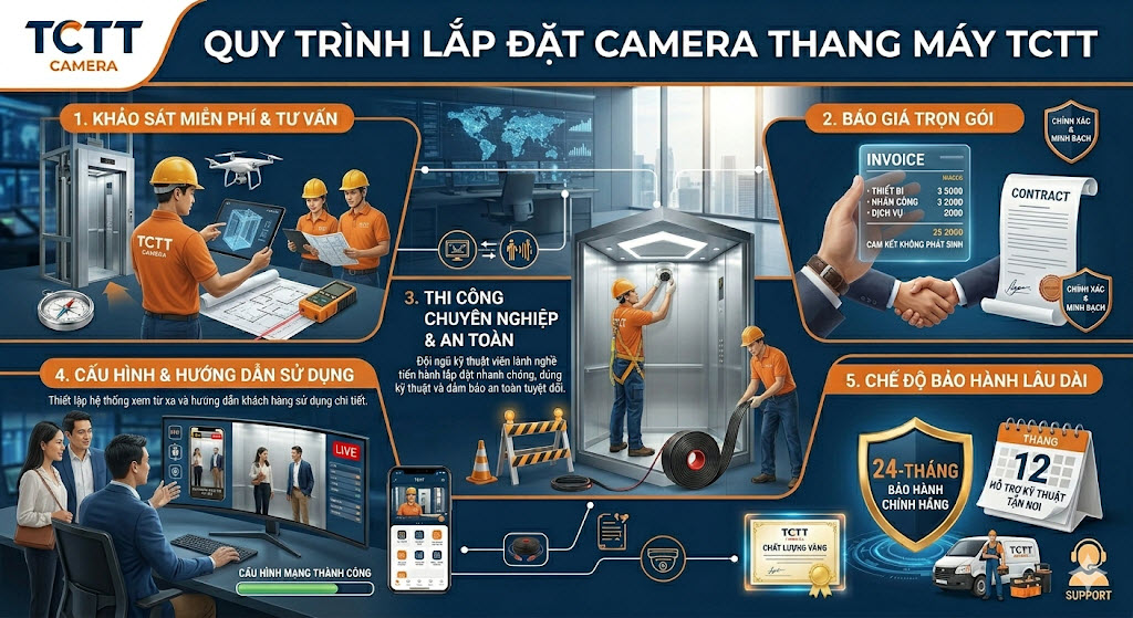 - Quy trình lắp đặt camera thang máy tại TCTT Camera