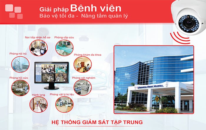 - Giám sát tài sản của bệnh viện, quan sát phòng bệnh nhân, ghi hình làm việc của đội ngũ bác sĩ, y tá cũng như công tác chuyên môn một cách liên tục, trực tuyến, hình ảnh bệnh nhân được truyền về phòng kỹ thuật trung tâm, vì thế bất kỳ lúc nào tình trạng bệnh nhân cũng được theo dõi kỹ để có thể can thiệp kịp thời.