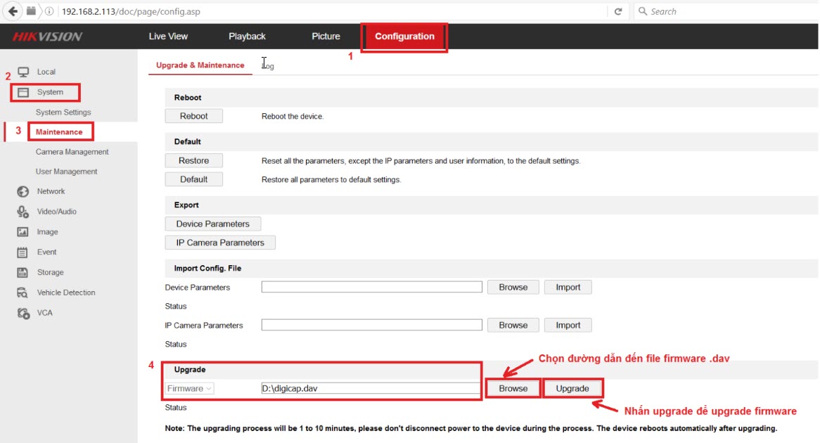 Cập nhật phần mềm Hikvision qua trình duyệt web