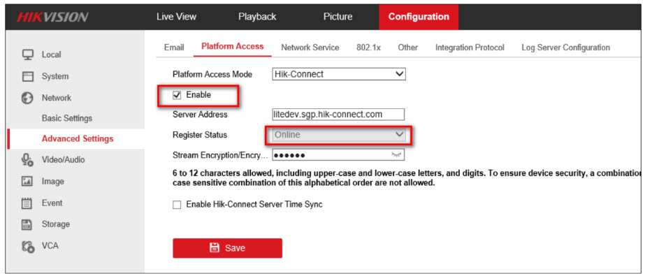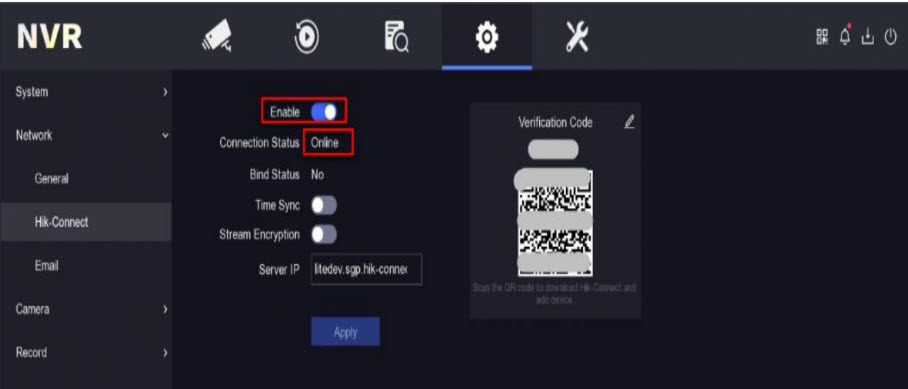 - 1. Kích hoạt nền tảng Hik-Connect ở phần Network (Mạng) --> Hik-Connect
