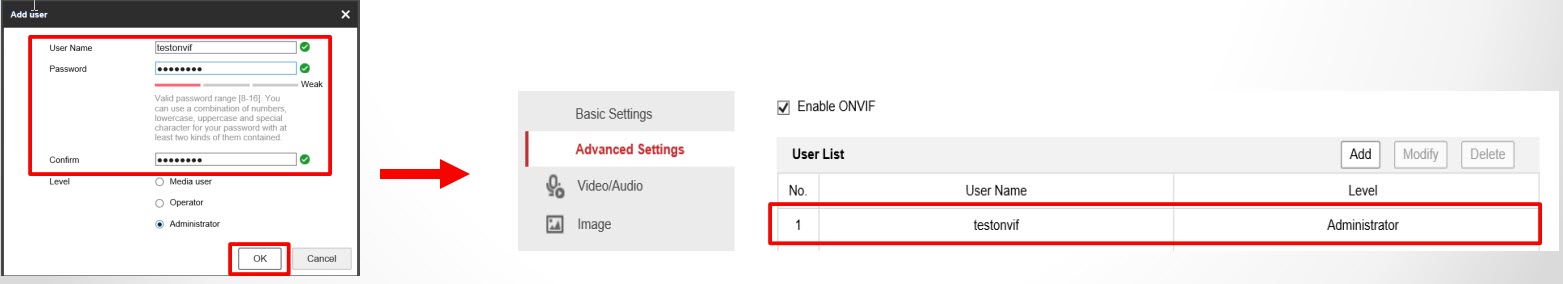 - Hệ thống quản lý người dùng ONVIF độc lập với hệ thống quản lý thiết bị.