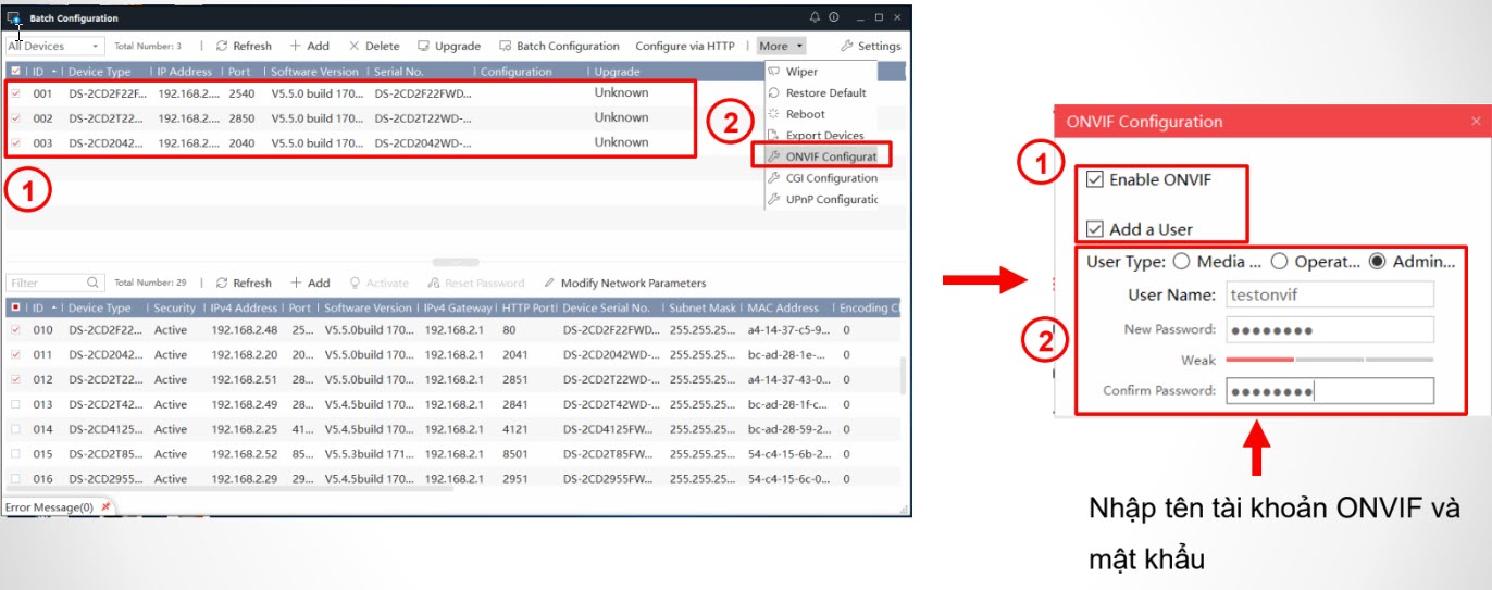 Phần 2 : Cấu hình bật ONVIF trên phần mềm Batch Configuration (Cho nhiều thiết bị cùng lúc).