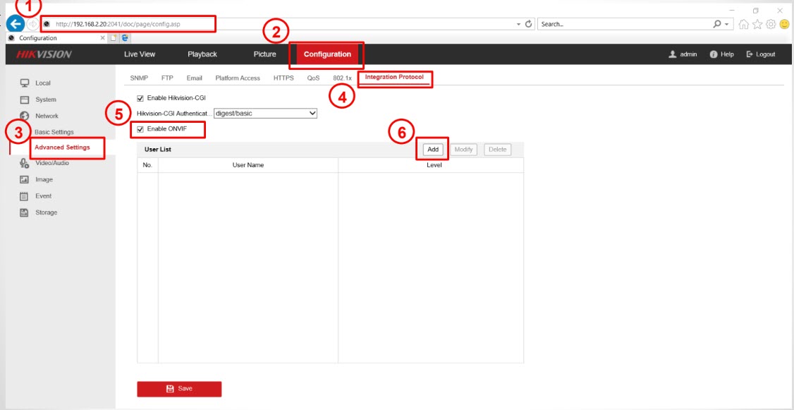 - Vào mục Configuration -> Network -> Advanced Settings -> Integration Protocol.