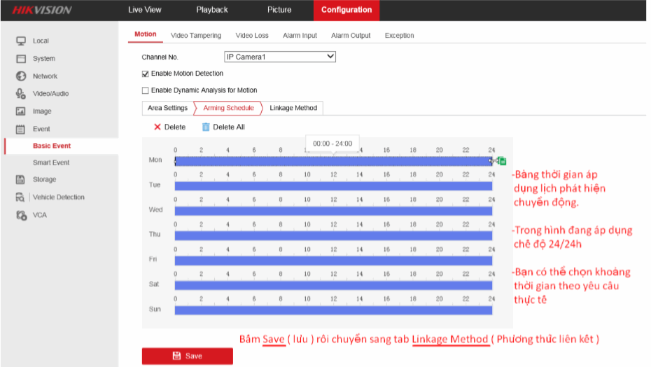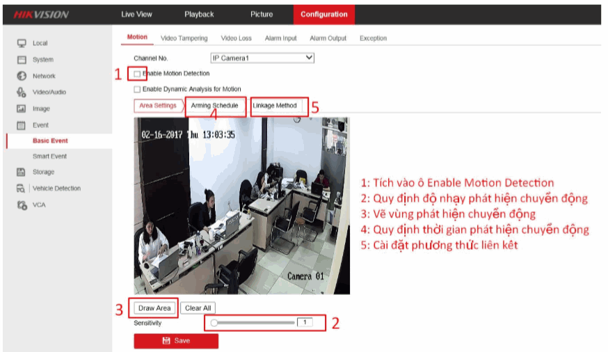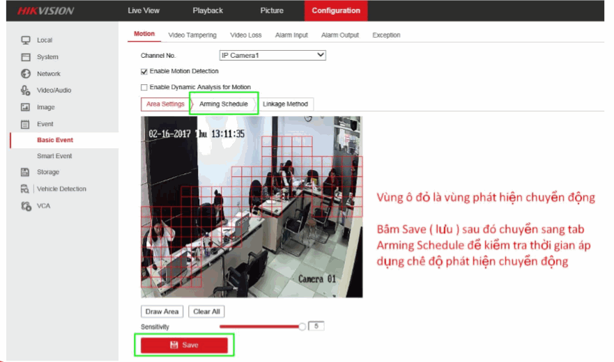 - Bật tính năng phát hiện chuyển động và vẽ vùng phát hiện chuyển động