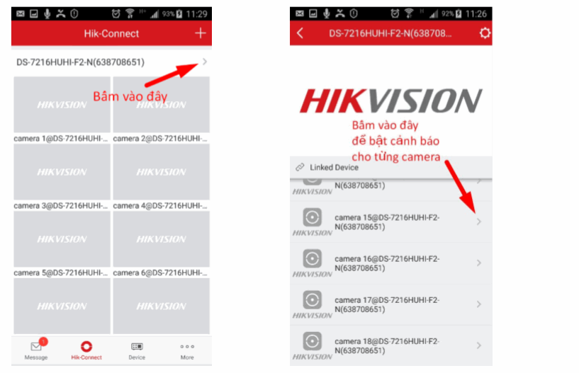 - Bật chế độ cảnh báo trên phần mềm Hik-Connect