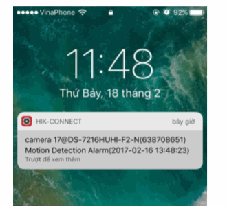 - Cảnh báo của Hik-Connect khi có sự kiện Bấm vào sự kiện để xem lại