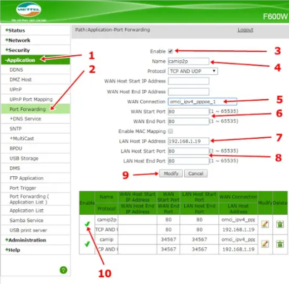 HƯỚNG DẪN NAT PORT CAMERA TRÊN MODEM CÁP QUANG ZTE 600W