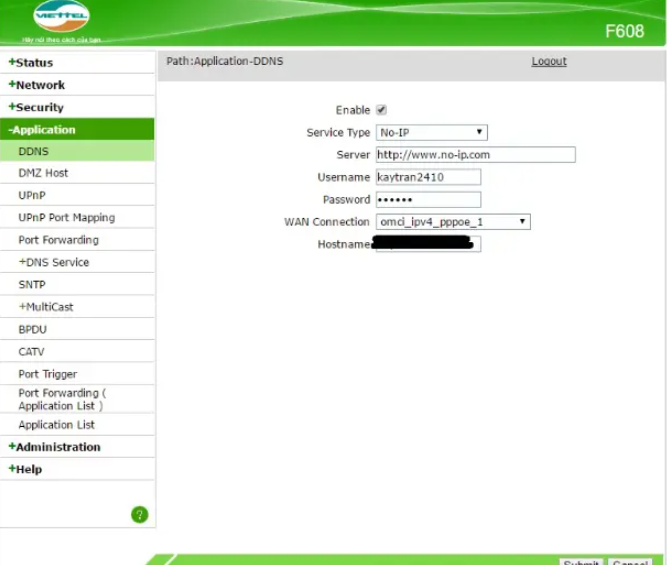 Bước 4: Nat tên miền trên modem ZTE F600W, modem ZTE F668, modem ZTE F608, ZTE F609, ZTE F660.