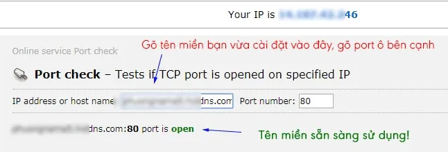Nếu lúc check port báo success là thành công, báo error là lỗi