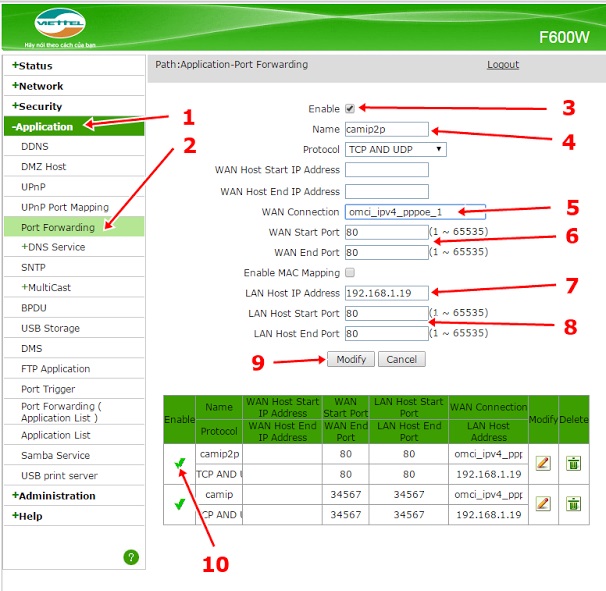 Hướng Dẫn NAT PORT MODEM cáp quang VIETTEL F608/600w