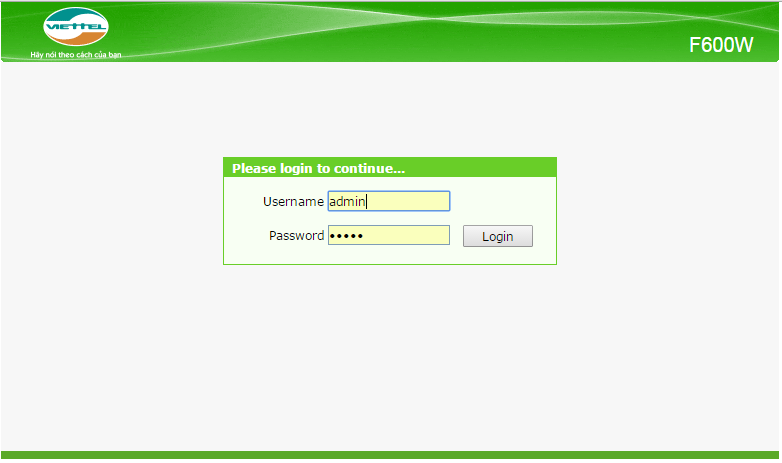 Bước 1: Đăng nhập modem cáp quang của viettel F600w
