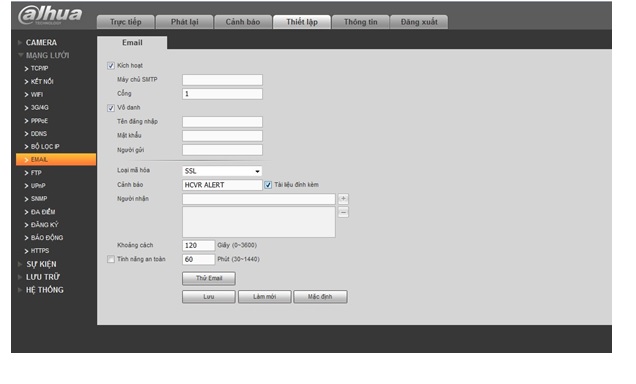 HƯỚNG DẪN CÀI ĐẶT GỞI THÔNG TIN QUA MAIL CHO ĐẦU GHI DAHUA