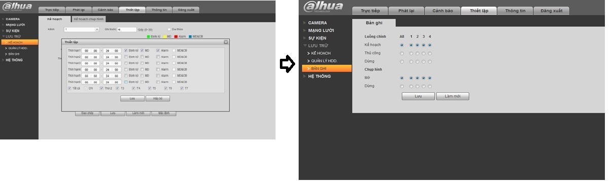 - Bước 1: Bạn phải Chọn kế hoạch để thiết lập ghi hình