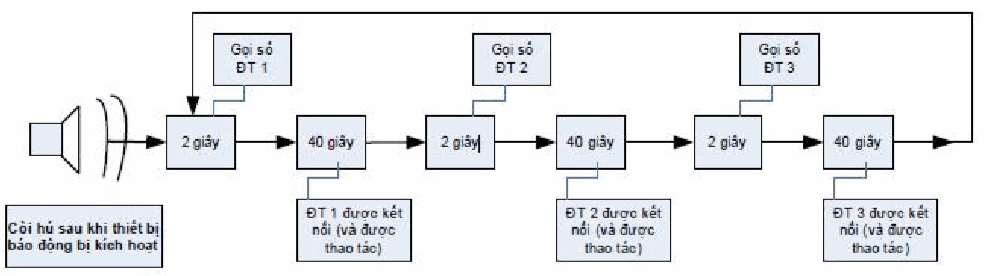 Khi trung tâm báo động hú còi và báo qua số điện thoại mà bạn đã lập trình sẵn. Cách quay số điện thoại :