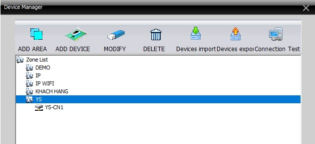 - System = Device Manager (Góc dưới bên trái màn hình) Add Area (Thêm vùng hoặc nhóm): Chỉ thêm lần đâu tiên