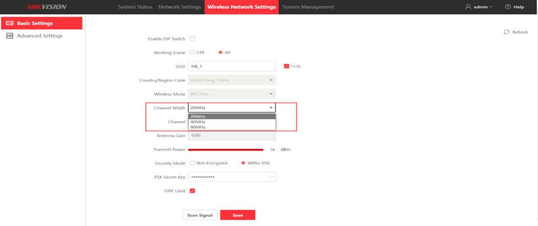 - Mẫu Wireless Bridge này hỗ trợ ba loại độ rộng kênh, bao gồm 20MHz, 40MHz, 80MHz