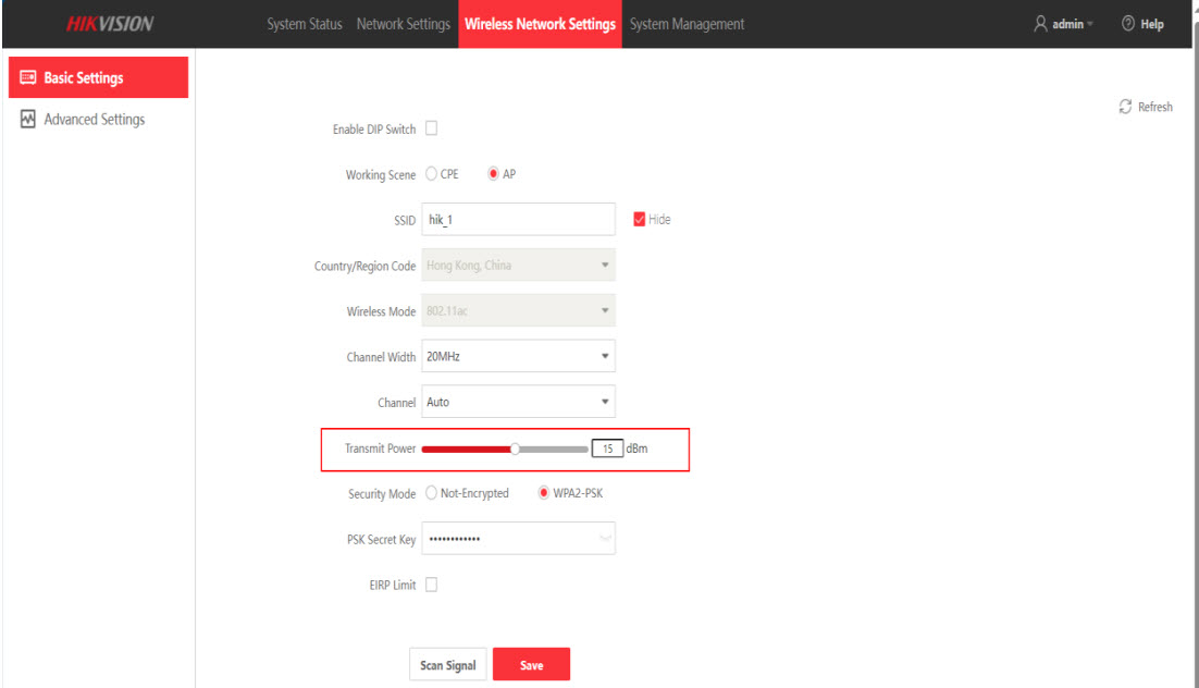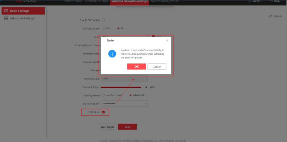 - Theo môi trường, cầu nối không dây hỗ trợ thay đổi công suất phát, nhưng thông số này mặc định là 14dBm, nếu bạn muốn thay đổi, vui lòng thoát khỏi “Giới hạn EIRP” trước. Vui lòng tuân thủ các quy định của địa phương khi điều chỉnh công suất phát.