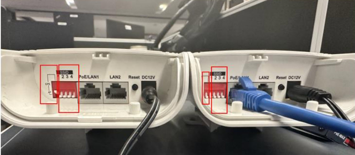 - Đặt DIP là SSID của mạng không dây và SSID giữa hai cầu phải giống nhau. Và Cảnh làm việc của một cầu là AP (mô-đun TX), cầu kia là CPE (mô-đun RX)