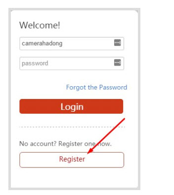 - Bạn sử dụng một trình duyệt bất kì và đăng nhập vào địa chỉ tên miền của hik-connect là https://www.hik-connect.com/ sau đó bạn kích vào ô Register để đăng kí một tài khoản.