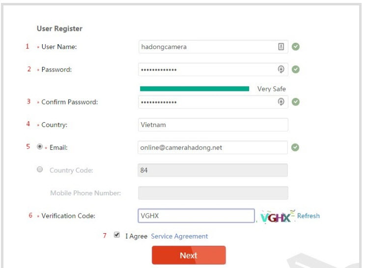 - Verification Code: Mật khẩu của hik-connect. Các bạn lưu vào sau này sẽ cần đến.