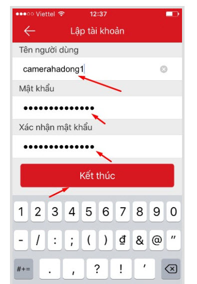 - Lưu ý: Tài khoản phải chưa có người sử dụng, Mật khẩu phải có vừa chữ vừa số trên 8 kí tự