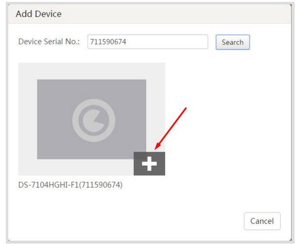 - Nó sẽ hỏi seri bạn muốn thêm vào hik-connect là gì. Chúng ta sẽ gõ số seri của đầu ghi hoặc camera ip rồi nhấn search.