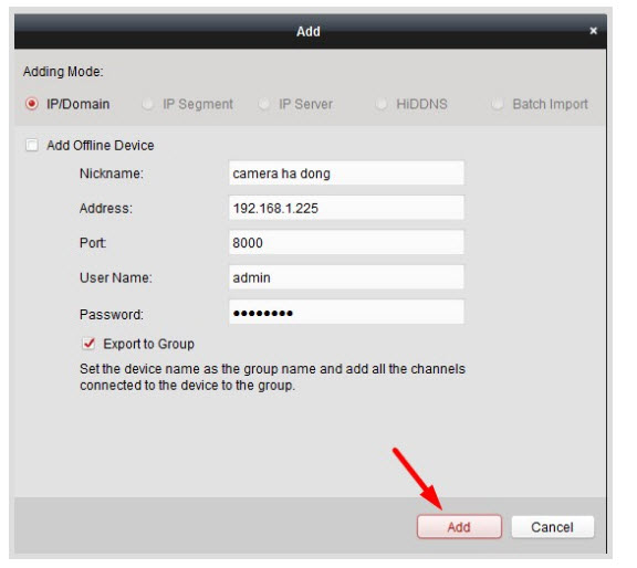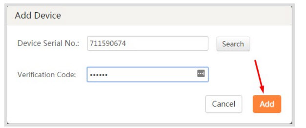 - Chúng ta sẽ điền mã xác thực của đầu ghi vào rồi nhấn Add.