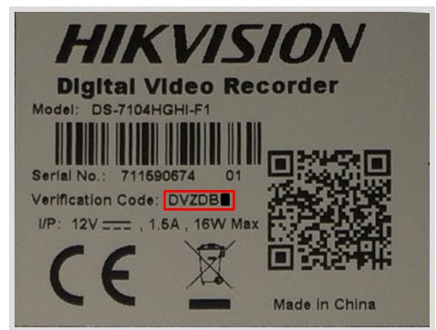- Trên đầu ghi hình camera: Trong phần mềm của camera cũng trong mục kích hoạt của đầu ghi hình, Dưới đáy đầu ghi hình. Tất cả đều ghi là Verification Code gồm 6 kí tự chữ viết hoa