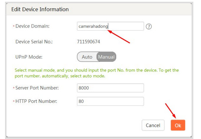 - Enable: Lưu ý phải tích vào dòng này để bật hik-connect