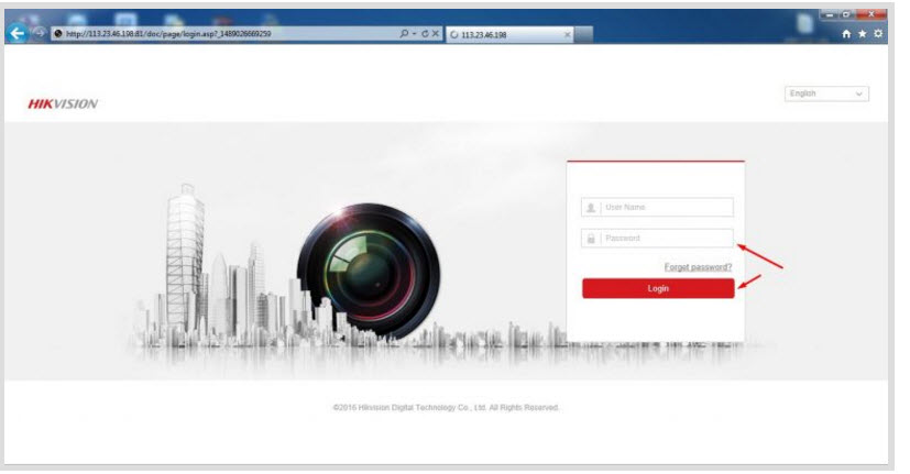 - Sau từ 4-6 giây nó sẽ tự động đưa chúng ta tới trang đăng nhập của hik-connect. Chúng ta sẽ điền user, mật khẩu của đầu ghi hình, hoặc user mật khẩu của camera rồi nhấn vào Login
