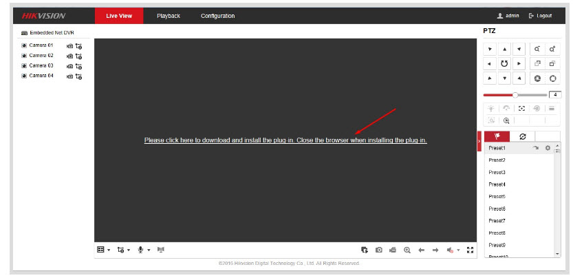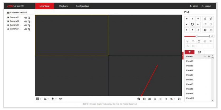- Giao diện 4 ô camera hiện ra tức là ta đã cài đặt plugin thành công. Chúng ta chỉ việc kích vào biểu tượng hình tam giác bên dưới để xem toàn bộ các camera. Nếu muốn xem từng camera các bạn có thể kích vào từng camera bên trái màn hình. Như vậy mình đã hướng dẫn xong hik-connect xem qua trang web rồi.