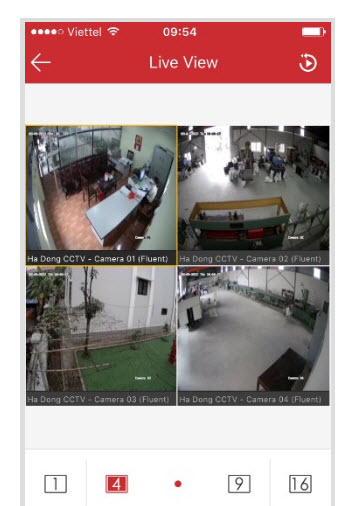 - Vậy là chúng ta xem được camera trên điên thoại rồi. Các bạn muốn xem to camera nào thì kích đúp lên camera đó.