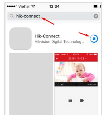 - Các bạn nhấn vào mục Tìm kiếm, trong ô tìm kiếm các bạn tìm kiếm Hik-connect rồi tải ứng dụng mang tên Hik-connect về máy của các bạn