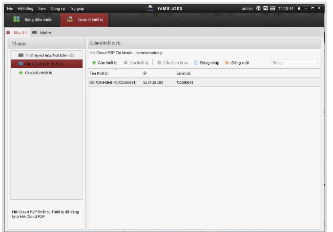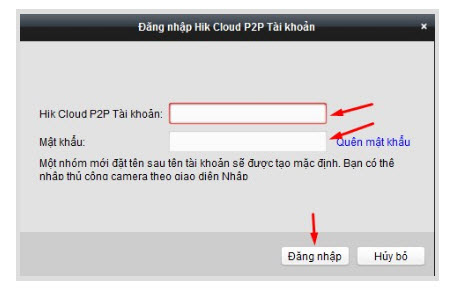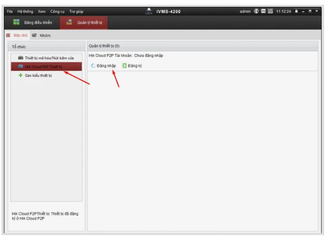 - Sau khi chúng ta chọn xong sẽ xuất hiện thêm 1 mục có tên là Hik Cloud P2P Thiết bị. Chúng ta chọn vào đó và click đăng nhập.