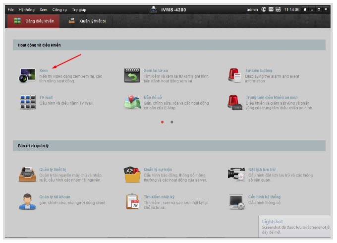 - Trong bảng điều khiển chính chúng ta nhấn Xem để vào mục xem trực tiếp.