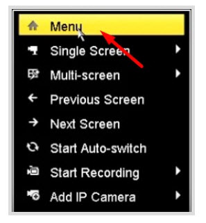 - Trên giao diện chính của đầu ghi hình các bạn nhấn Chuột phải -> Menu